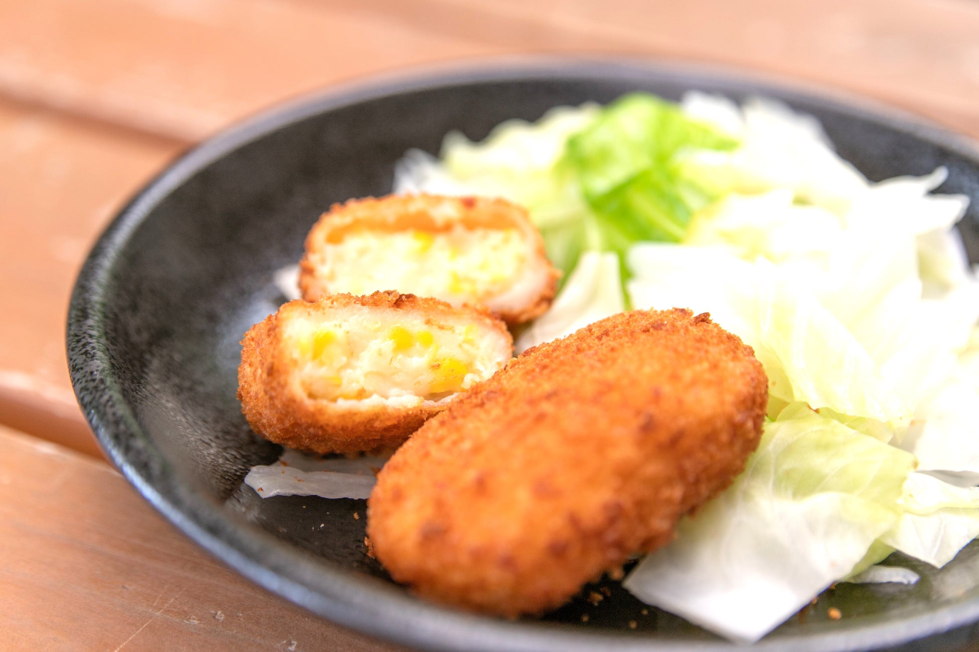 夏に収穫した農場産とうもろこしをコロッケにしました。クリーミーな甘みが広がり、何個でも食べたくなる美味しさです。小腹がすいたときにもおすすめです。