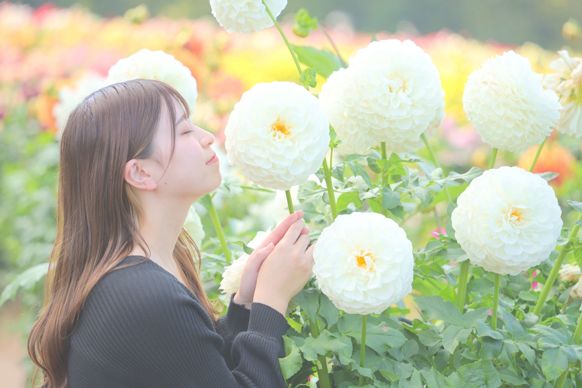 豪華絢爛なダリアと、可愛らしいガーデンマムが鮮やかに彩る秋の世羅高原をお楽しみください。