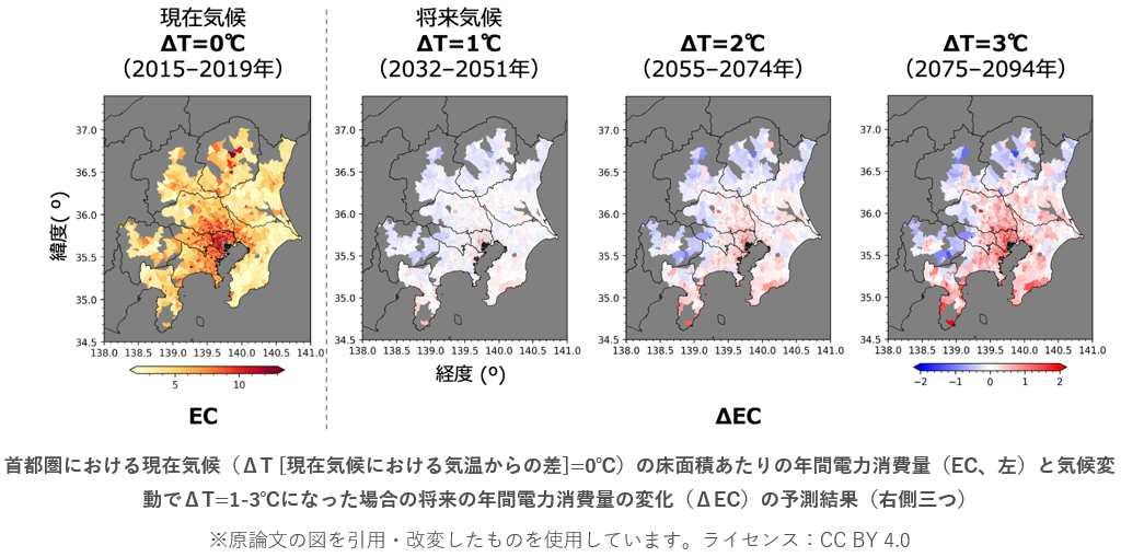 今回使用したビッグデータは首都圏限定ですが、算出した気温感応度は気候や建物の断熱性などの条件が似た都市に応用できます。また、将来推計方法はそのまま他の都市にも適用可能であり、日本全国の脱炭素化への事前評価などに役立ちます。