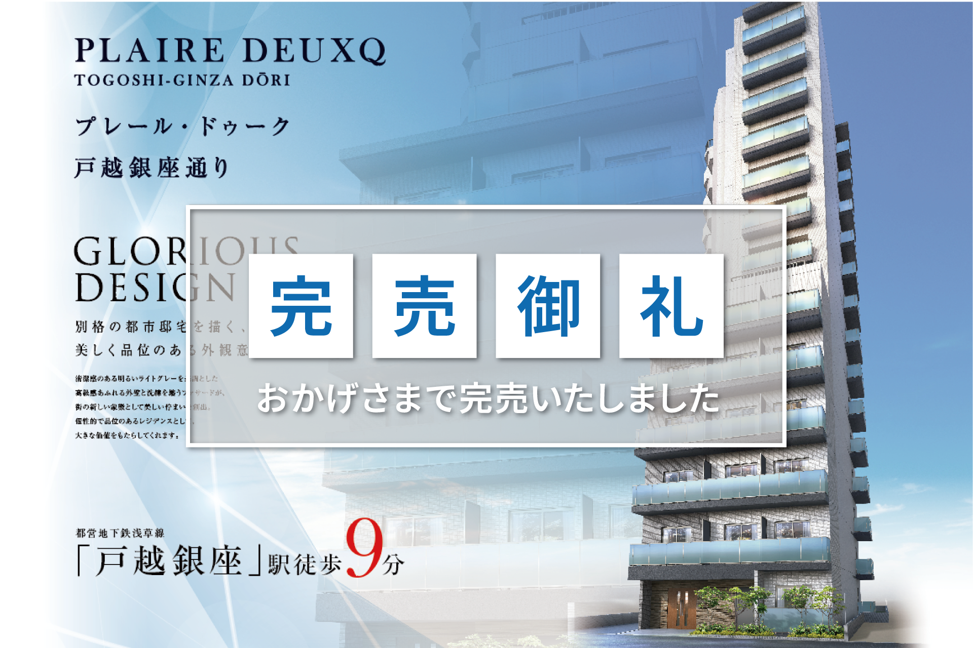 品川区の新築投資用マンション「プレール・ドゥーク 戸越銀座通り」全戸完売のお知らせ ※「プレール・ドゥーク 北品川」好評発売中※