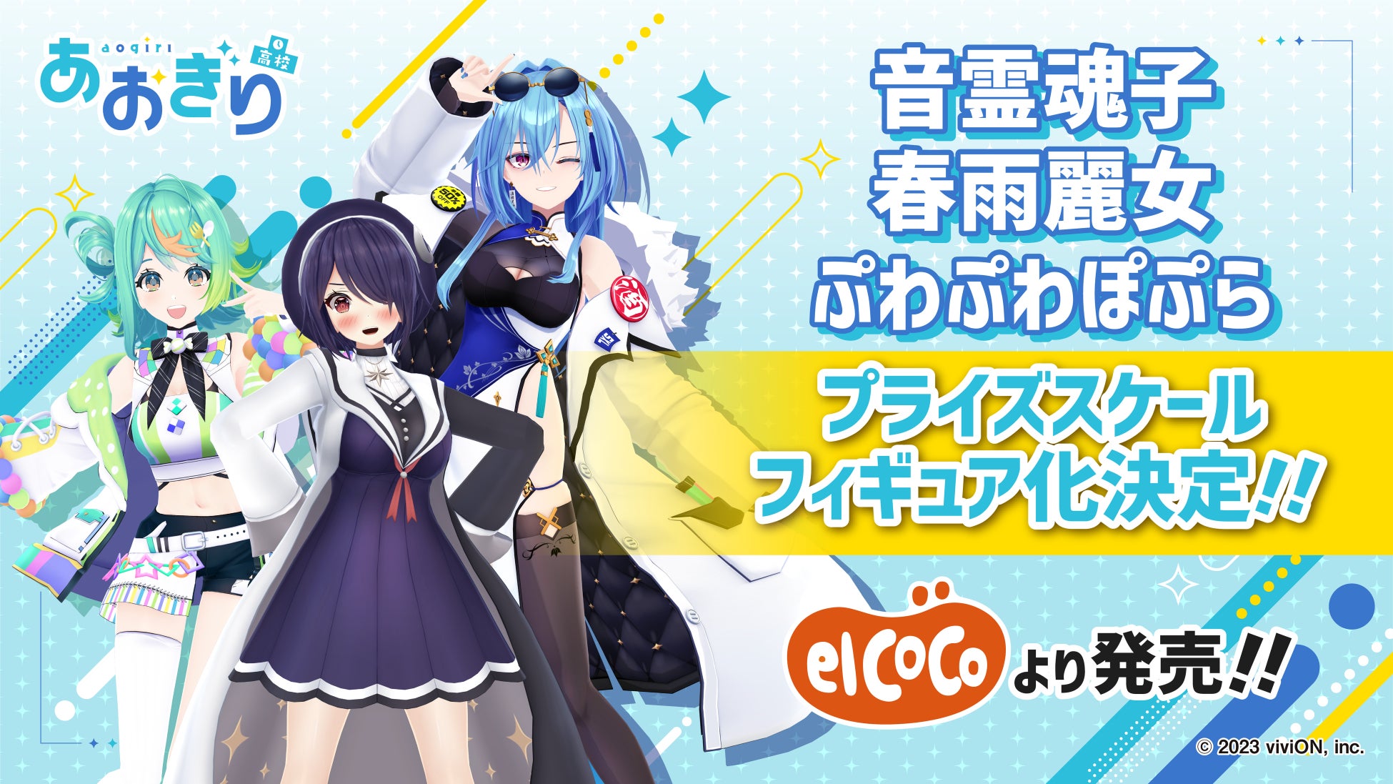 VTuberグループ『あおぎり高校』より「音霊魂子」、「春雨麗女」、「ぷわぷわぽぷら」の1/7スケールフィギュアが登場!