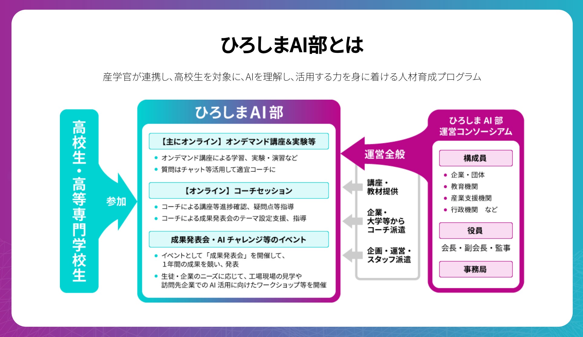 当社は、ひろしまAI部への参画を通じて、次世代のリーダーたちが社会や地域の課題を解決するための力を身につけられるよう全力でサポートしてまいります。これからも教育を通じて未来を創るという使命を胸に、一人ひとりの可能性を引き出し、より良い社会づくりに寄与していきます。