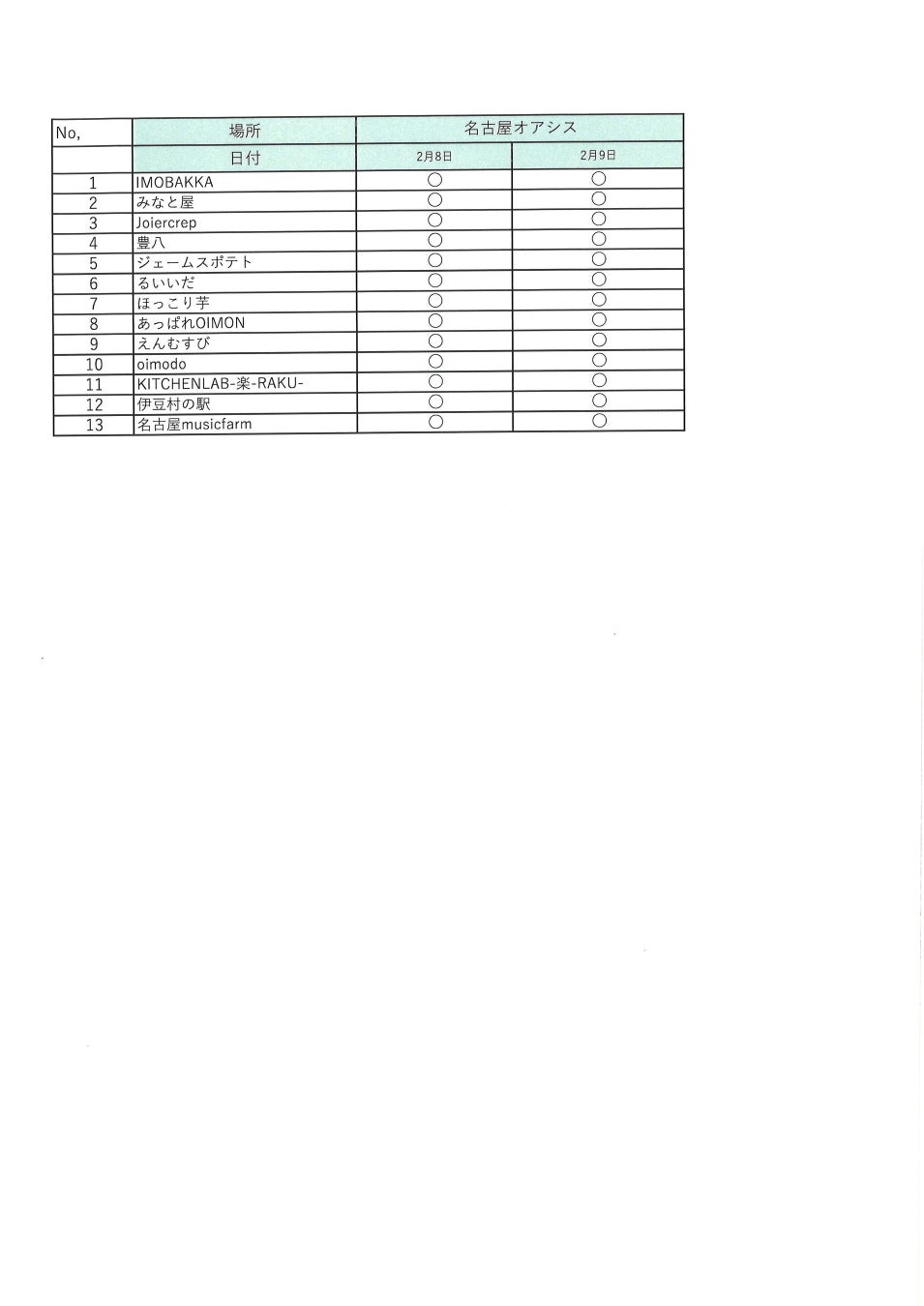 2025年2月8日-9日第3回芋フェス!IN名古屋オアシス 出店者決定!!