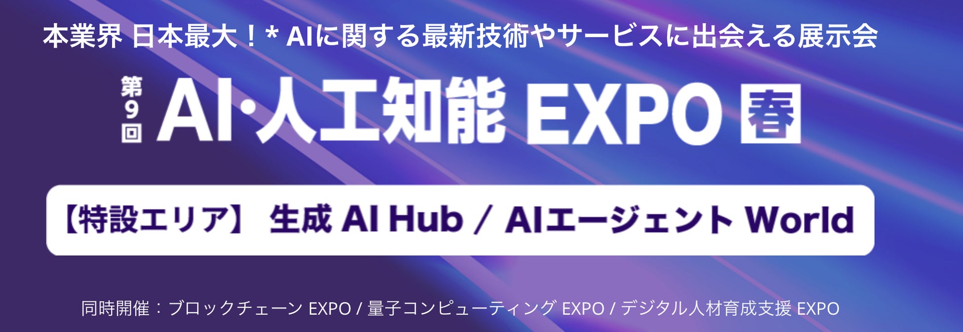 「NexTech Week 2025 AI・人工知能EXPO」は、日本最大、AI技術の専門展示会です。DX推進や業務効率化などのお悩みをご相談いただけます。