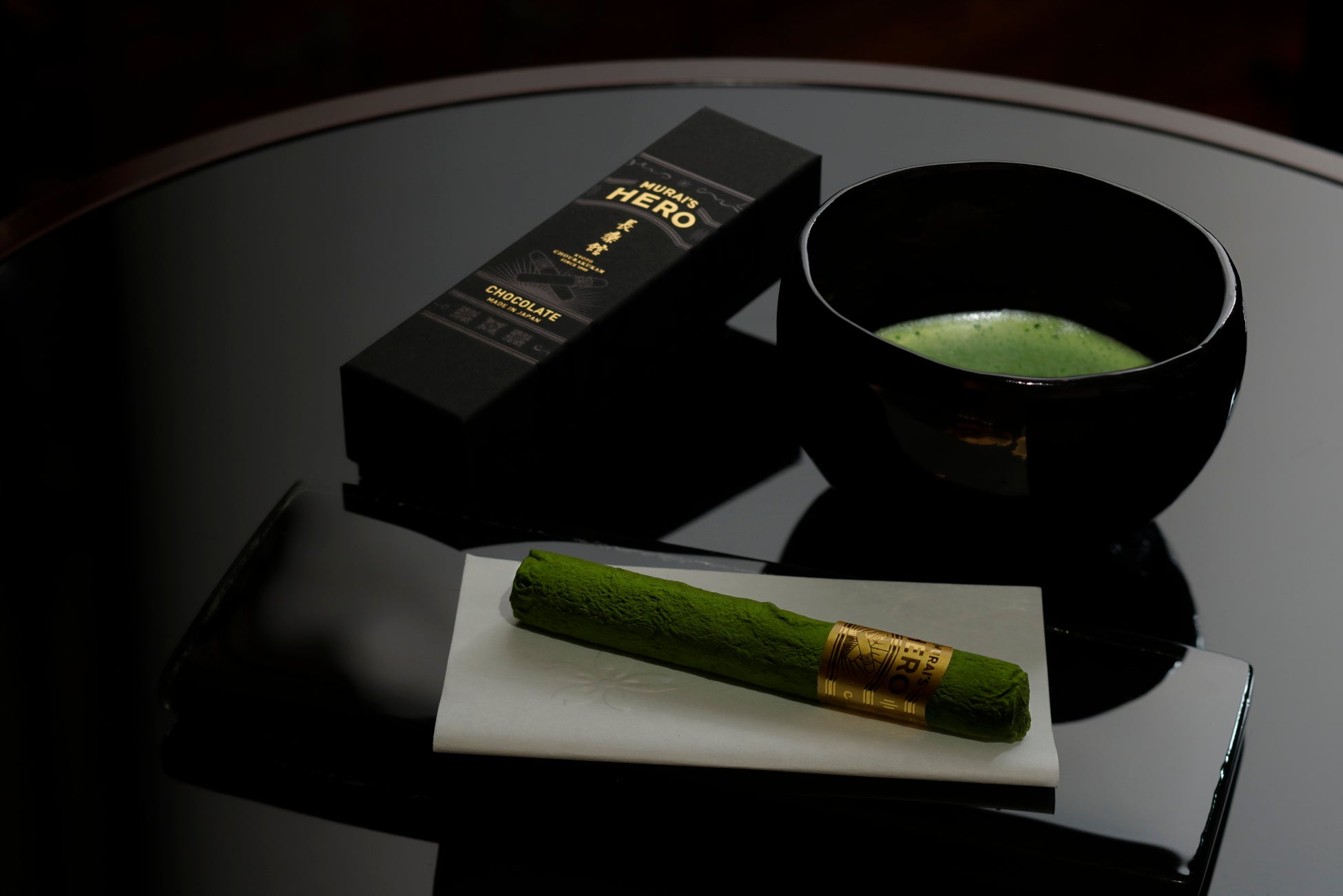 村井吉兵衛のたばこ「HERO」をモチーフとしたチョコレート菓子MURAI'S HEROの限定版 抹茶を期間限定で販売します。村井吉兵衛の故郷・京都らしい、どこか懐かしさを覚える味わいです。宇治の抹茶のほろ苦い味わいと柚子皮の爽やかな酸味、薄焼きクレープ生地の香ばしさ、そしてサクサクのライスパフが味わいの調和と食感の変化をもたらします。