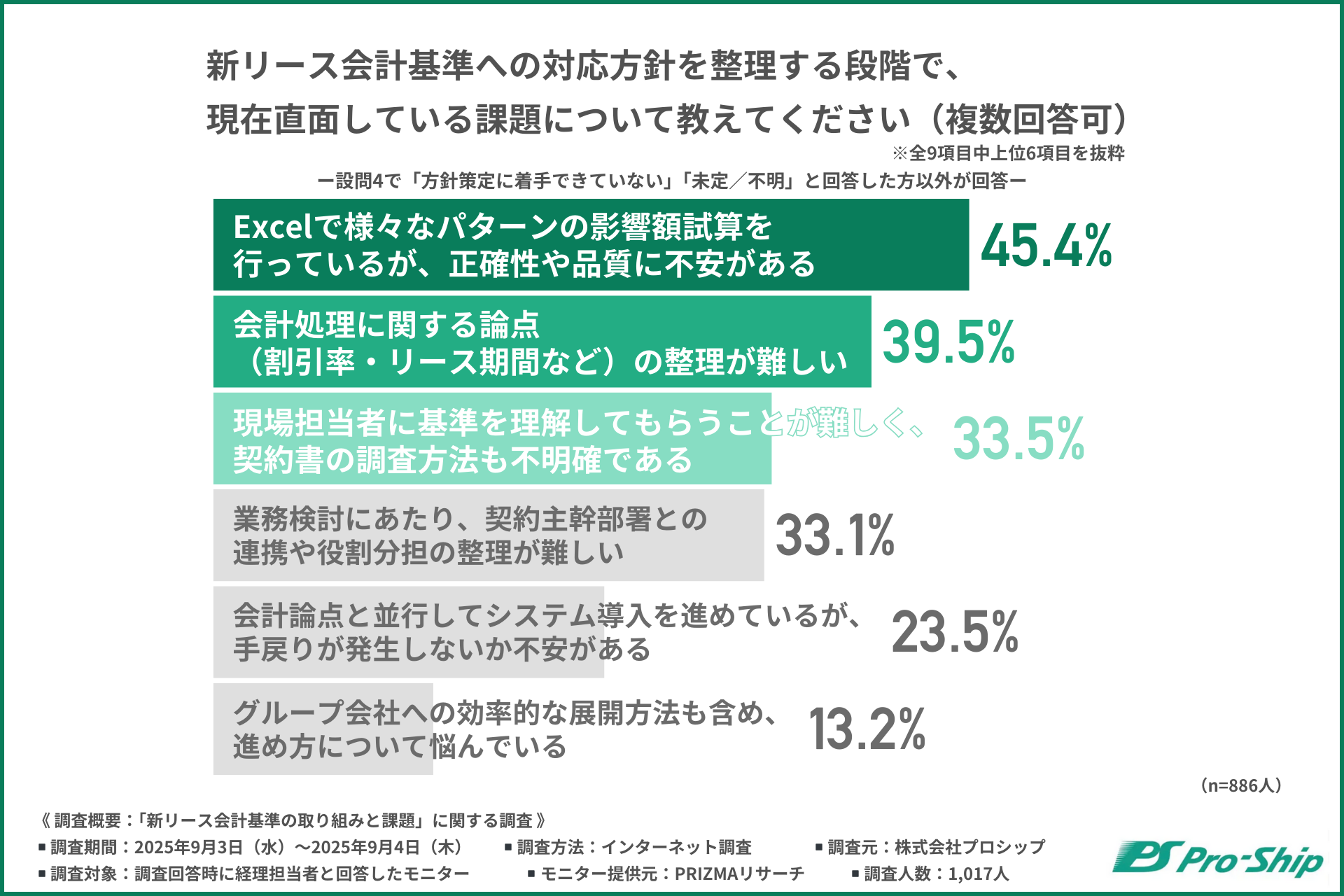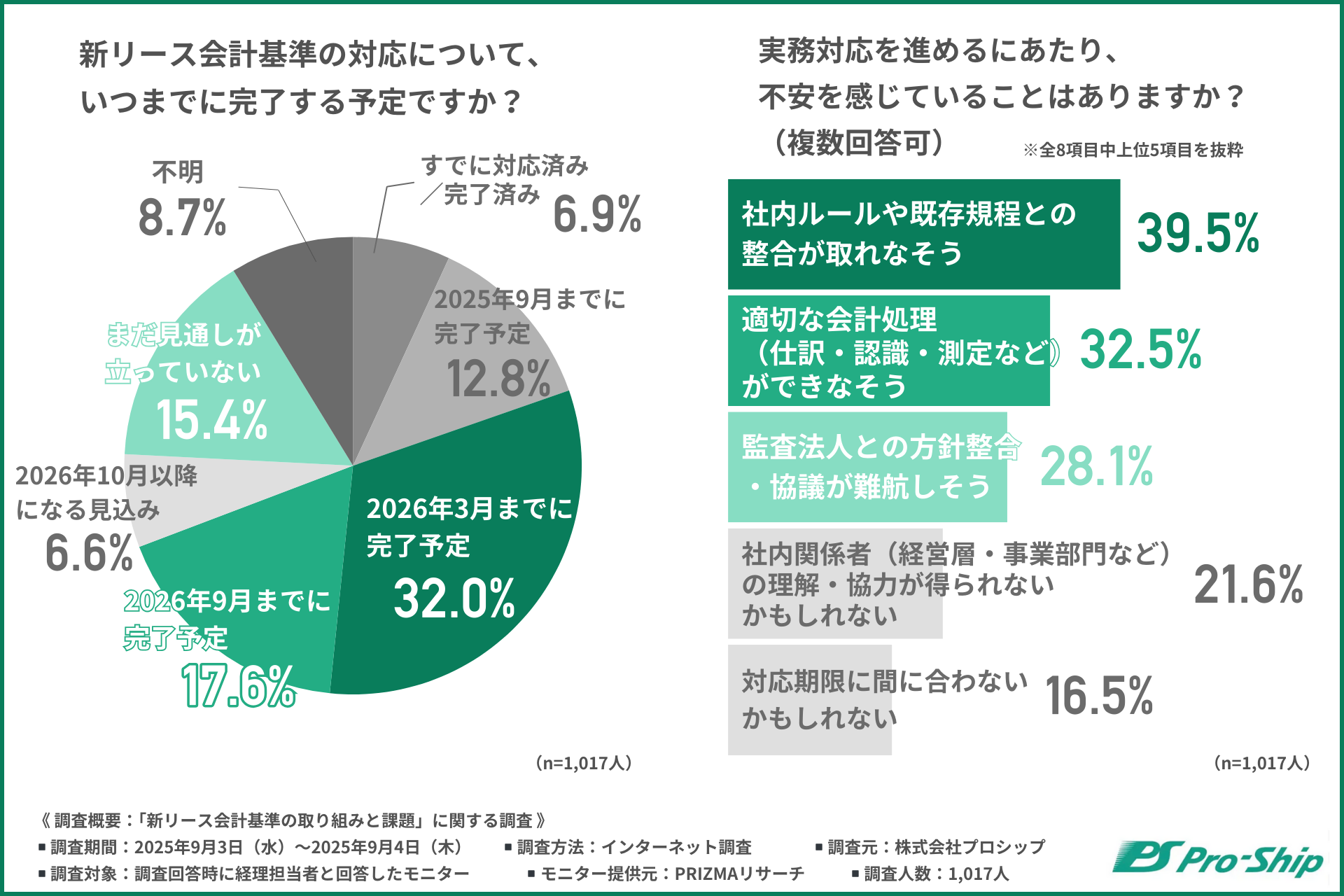 そこで今回、株式会社プロシップ(https://www.proship.co.jp/)は、経理担当者を対象に「新リース会計基準の取り組みと課題」に関する定点アンケートを実施。企業が対応方針の整理をどのように進め、どのような課題に直面しているのかに焦点を当て、その実態と支援ニーズを探りました。