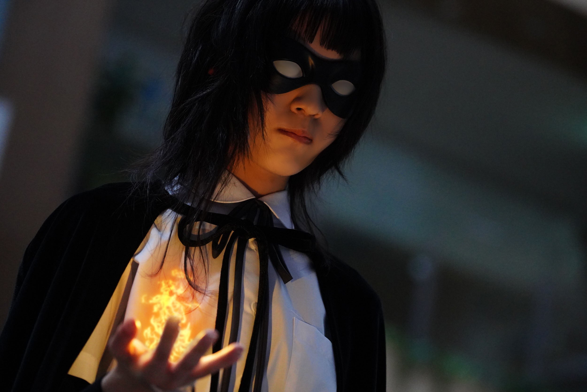 そしてこの度、本作初解禁となる場面写真が到着!血にぬれた指先を突き出し鬼気迫る表情を見せるノゾミや、黒い仮面を着け怪しげな面持ちで手に小さく火をともすアカリ、公園でチアリーダーのコスチュームを身にまとったサクラが5㎝だけ空を飛んでいる様子など、物語のダークな世界観とともに主人公3人の特徴的な「異能力」がよく分かる場面が活写されている。