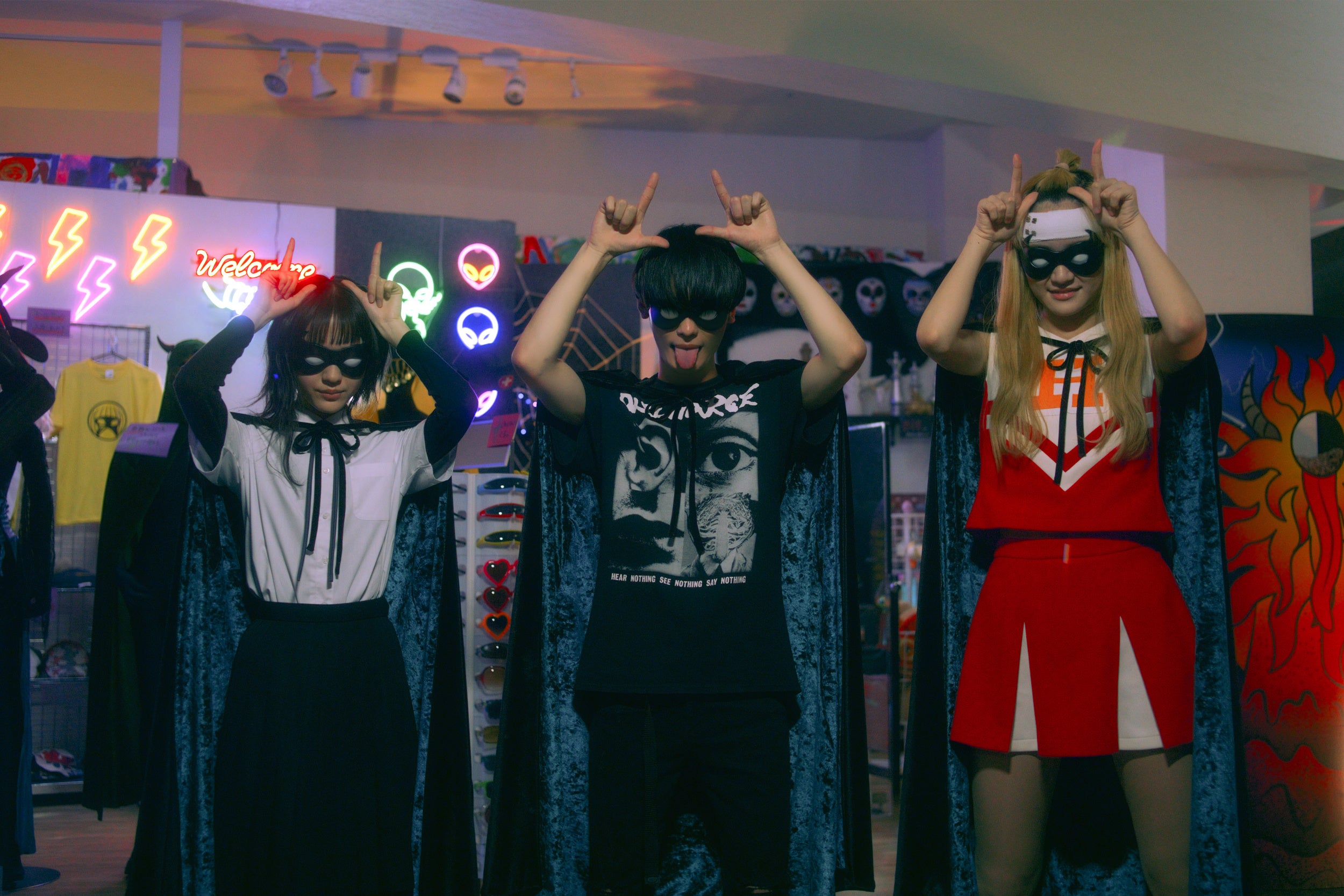 世界に絶望し自殺を図ったのを皮切りに、「ヒーロー」の血統でのみ受け継がれる「正義の味方」しか持ち得ないはずの能力を手にすることになる少年少女たち。しょぼ能力を手にして意気投合した3人が、世界を壊すために“EVOL=邪悪なワルモノ”となり、仮面とマントを身に着け両手人差し指を頭の上に掲げた揃いのポーズを決める場面も印象的だ。