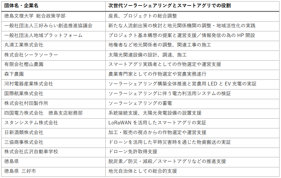 1,再生可能エネルギーの発電と営農の両立による、有益な農地利用を確立 2,営農ソーラーエネルギーの災害時活用や、地域イベント等への供給体制確立 3,若者・移住者等に「就業したい」と思ってもらえる、魅力的な農業スタイルの開発 4,参画企業の「横展開による事業拡大」実現により、さらなる広域課題解決プロジェクトとなることで、地域創生・地域貢献につなげる |