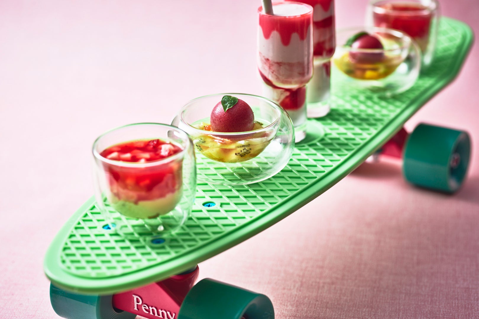 熟練のパティシエが1つ1つ丁寧に作る10種のスイーツと、イタリアンツイストを効かせた3種のセイボリーをスケートボードでお届け