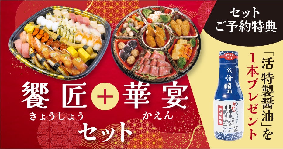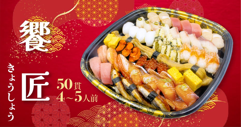 さらに、年末年始には、厳選された高級ネタを惜しみなく盛り込んだ豪華絢爛な大皿セット「饗匠(きょうしょう)」など、一年で最も特別なひとときに相応しいラインナップをご用意いたしました!