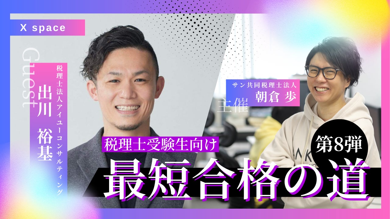 朝倉が運営するXスペースでは、福岡、東京、広島、埼玉、仙台エリアを中心に全国展開をしている税理士法人アイユーコンサルティング、代表税理士の出川 裕基氏をゲストに、これまでのキャリアや、税理士に合格するまでの道のり、そして、視聴者からの質問に対して回答をしました。