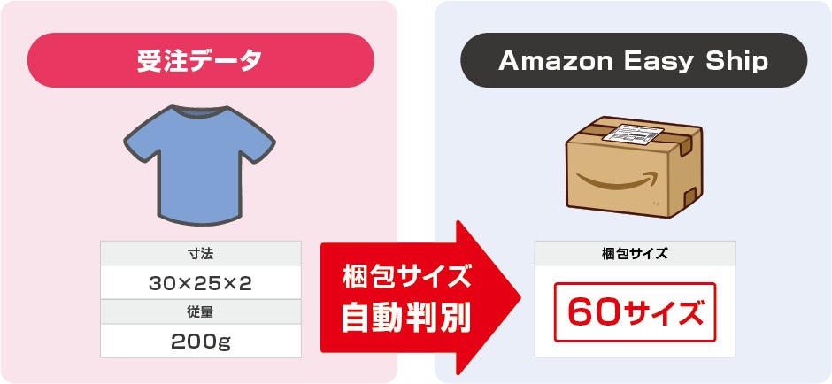 助ネコなら”追加費用無し”、”ワンストップ”で「Amazon Easy Ship」連携が可能!対象注文を自動振り分け、最適な梱包サイズを自動選択、集荷予約・送り状印刷もボタン一つで完了