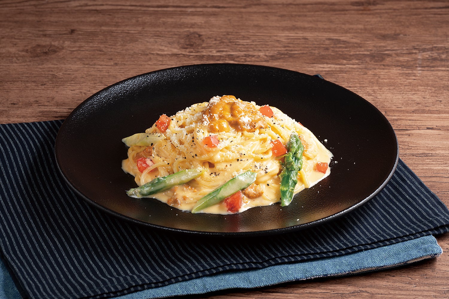 老舗の築地魚河岸から仕入れた新鮮な「うに」をクリームソースにも混ぜ込んだ贅沢メニュー。