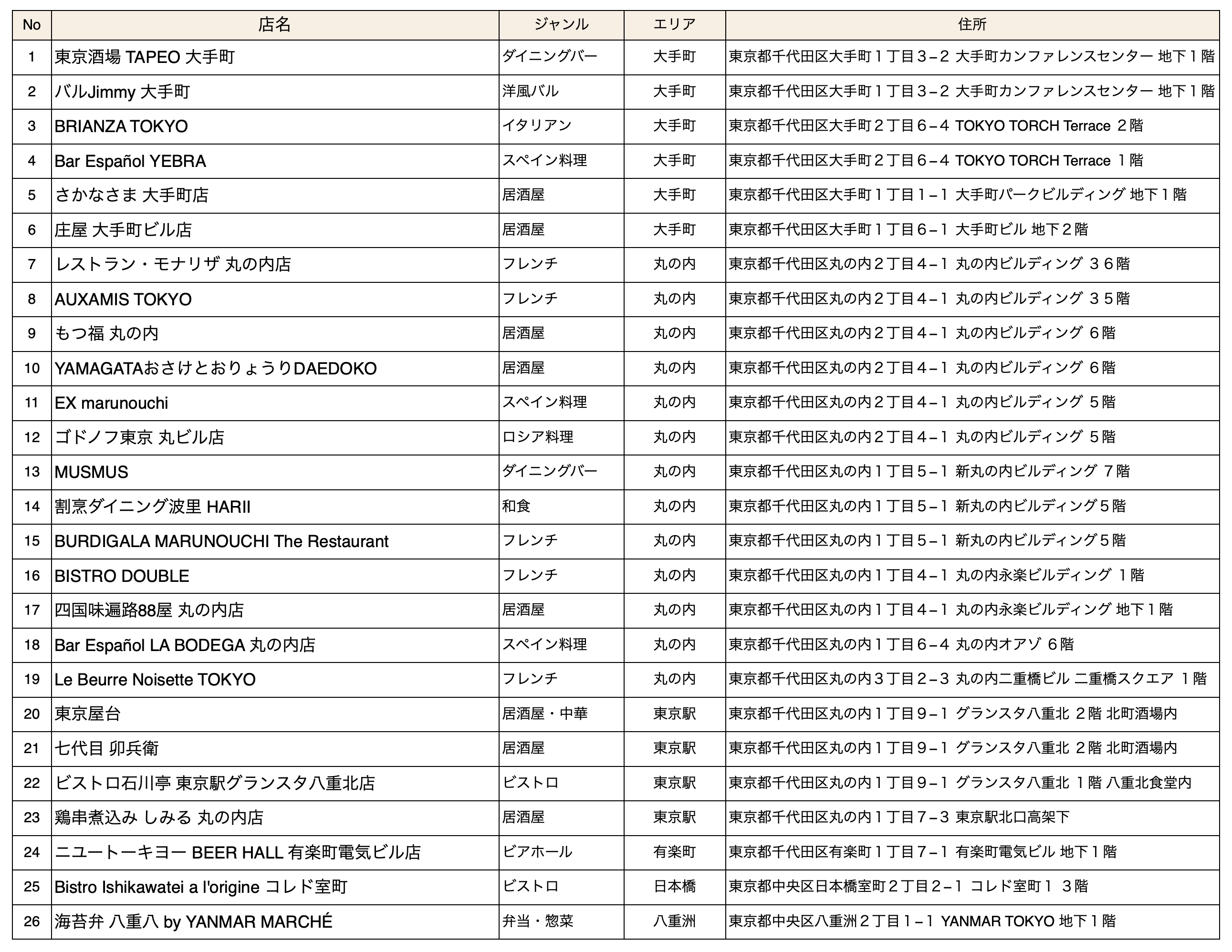 「のともっとRESTAURANT FAIR TOKYO」開催店舗情報