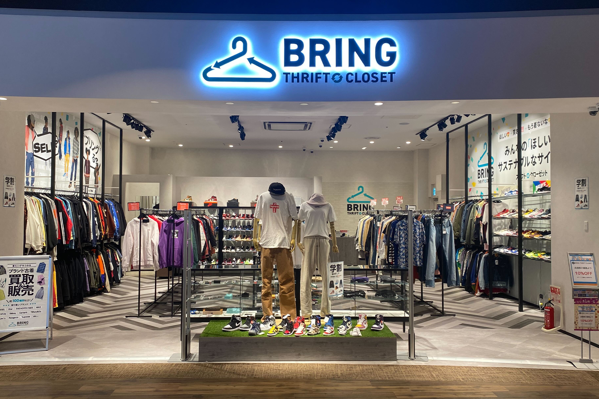 この度オープンする「BRING THRIFT CLOSET あべのキューズモール店」は、当ブランドとして記念すべき関西エリア第1号店となります。出店先である「あべのキューズモール」は、西日本有数の規模を誇り、地元にお住まいのファミリー層から、トレンドに敏感な若者層までが広く交差する大阪・阿倍野エリアの重要拠点であり、当店では、この多様な来客層を鑑み、ジャンルに縛られない幅広い商品ラインナップを展開します。長引く物価高騰の中でも、老若男女問わず誰もが気軽にブランドリユースを楽しめるよう、比較的低価格帯の商材を中心に構成し、地域に根差した「お買い物空間」を提供いたします。