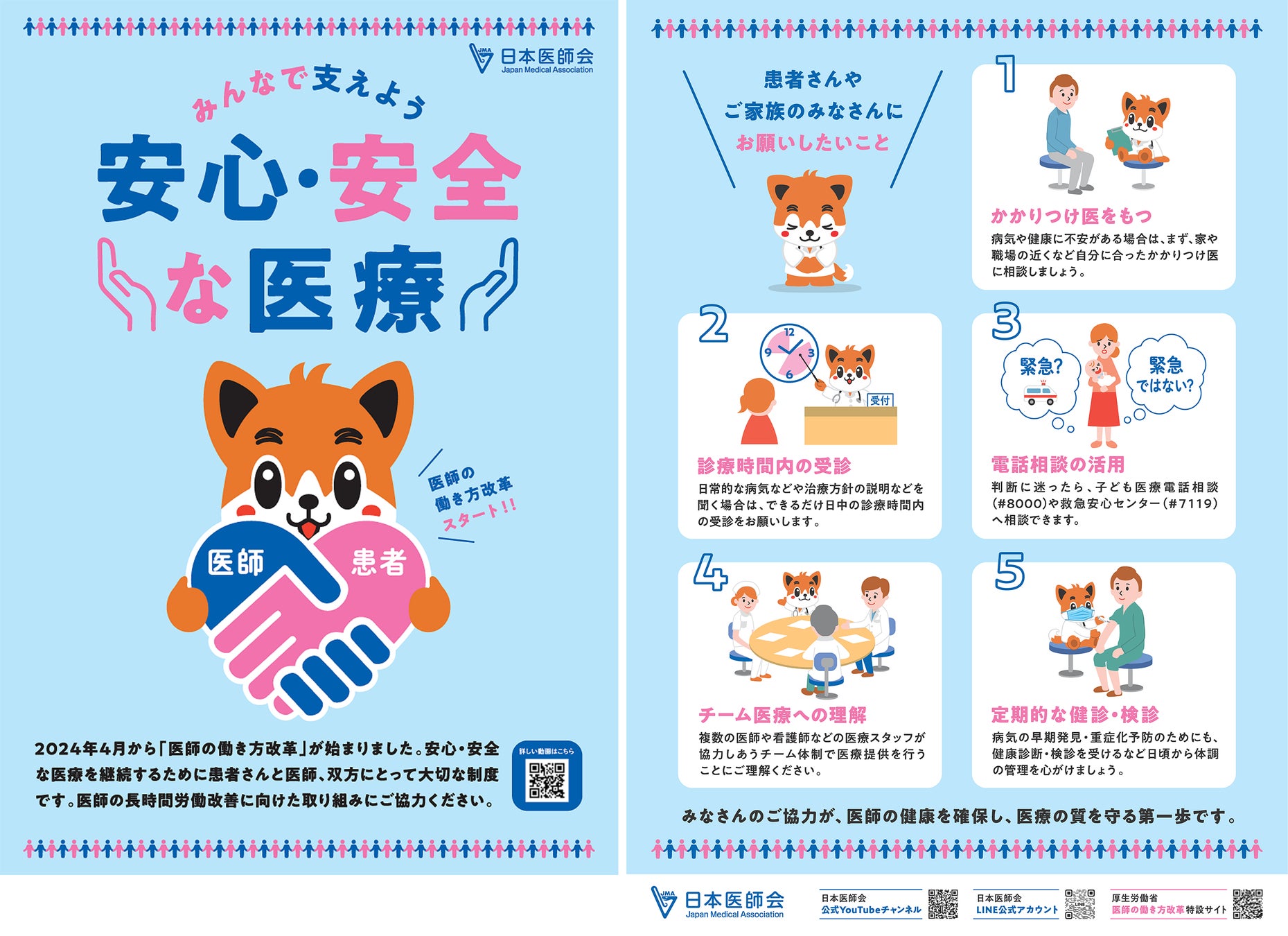 その他、日本医師会では、同様の内容をまとめたリーフレット(A4版表裏2枚)も制作しました。