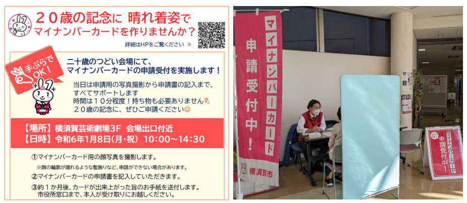 横須賀市(市長:上地克明)では、二十歳のつどい会場で、マイナンバーカードの申請受付を実施します。