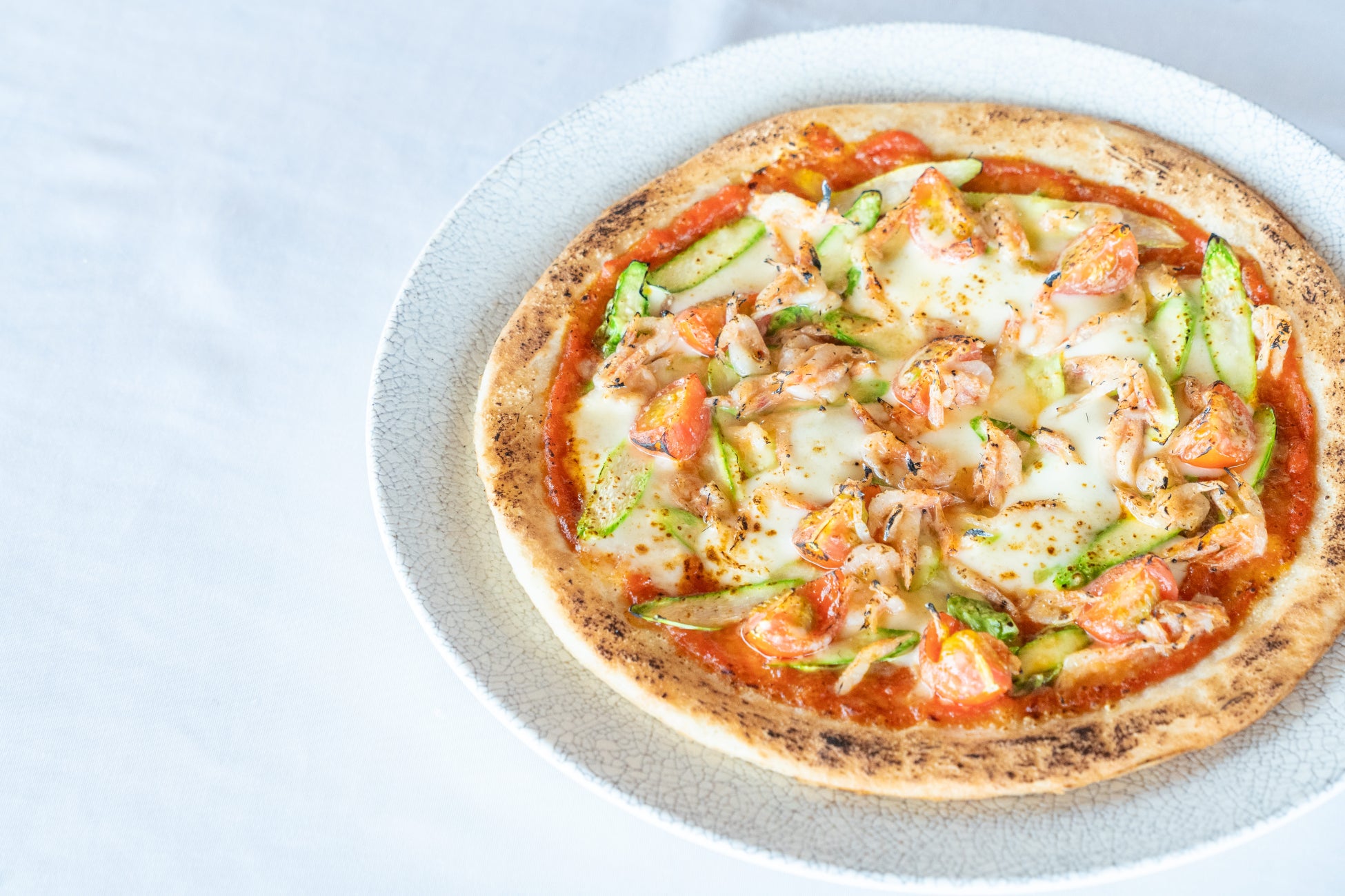 見た目も華やか、初夏にふさわしい贅沢なピッツァです。