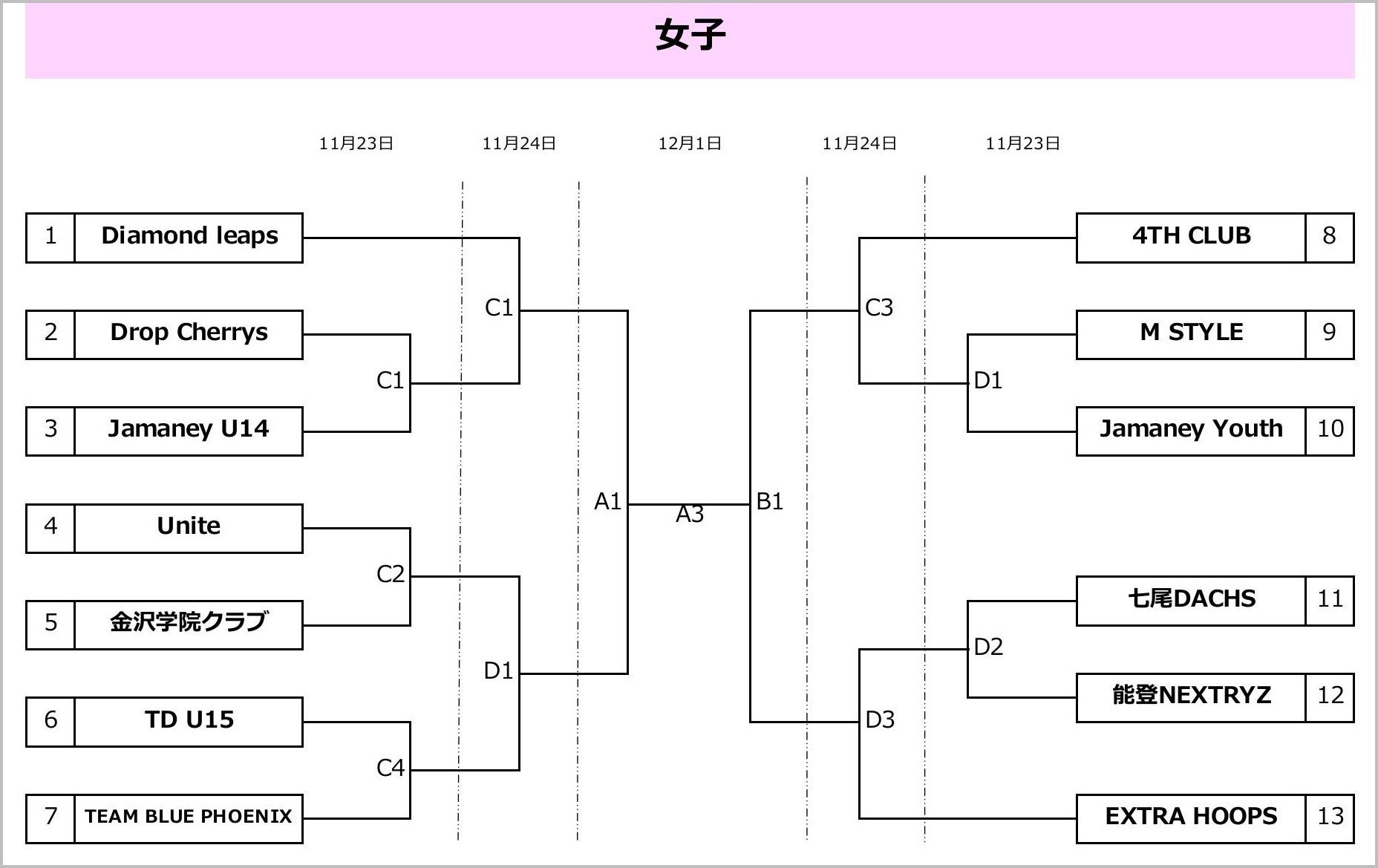 ※本大会の優勝チームには令和6年12月25日(水)~27日(金)愛知県で行われる「U15 CLUB BASKETBALL GAMES 2025」の出場権を与える。