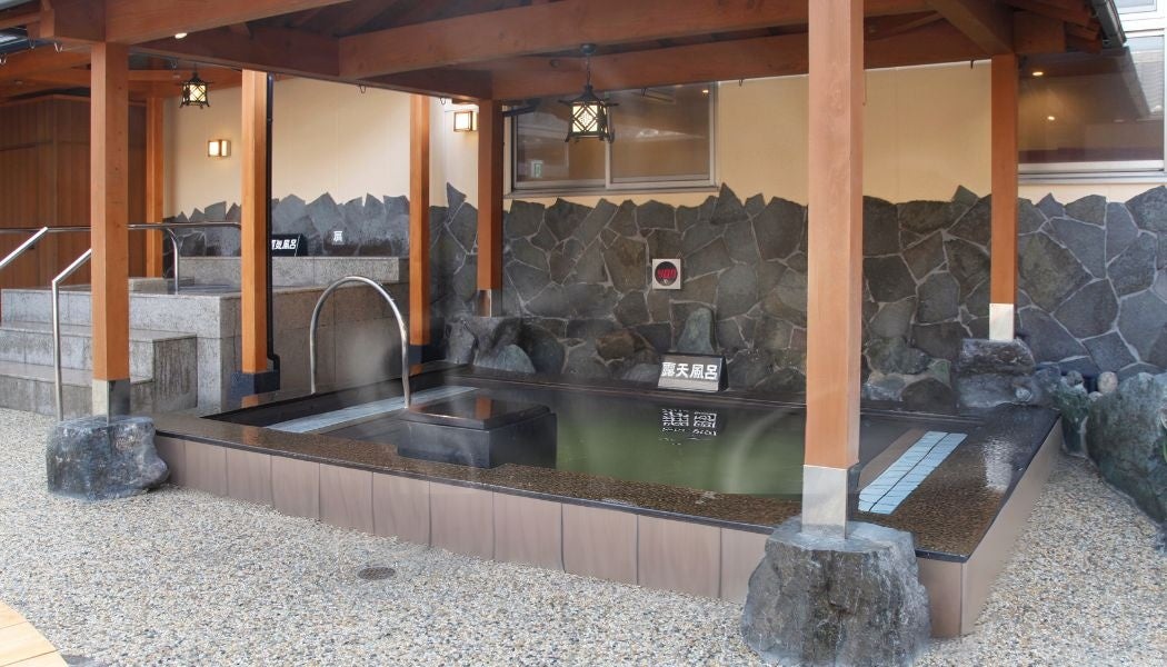 天然温泉露天風呂が抹茶の香りに包まれ、癒しの空間に大変身。抹茶の湯気が立ちのぼる中、心地よいひとときをお過ごしください。