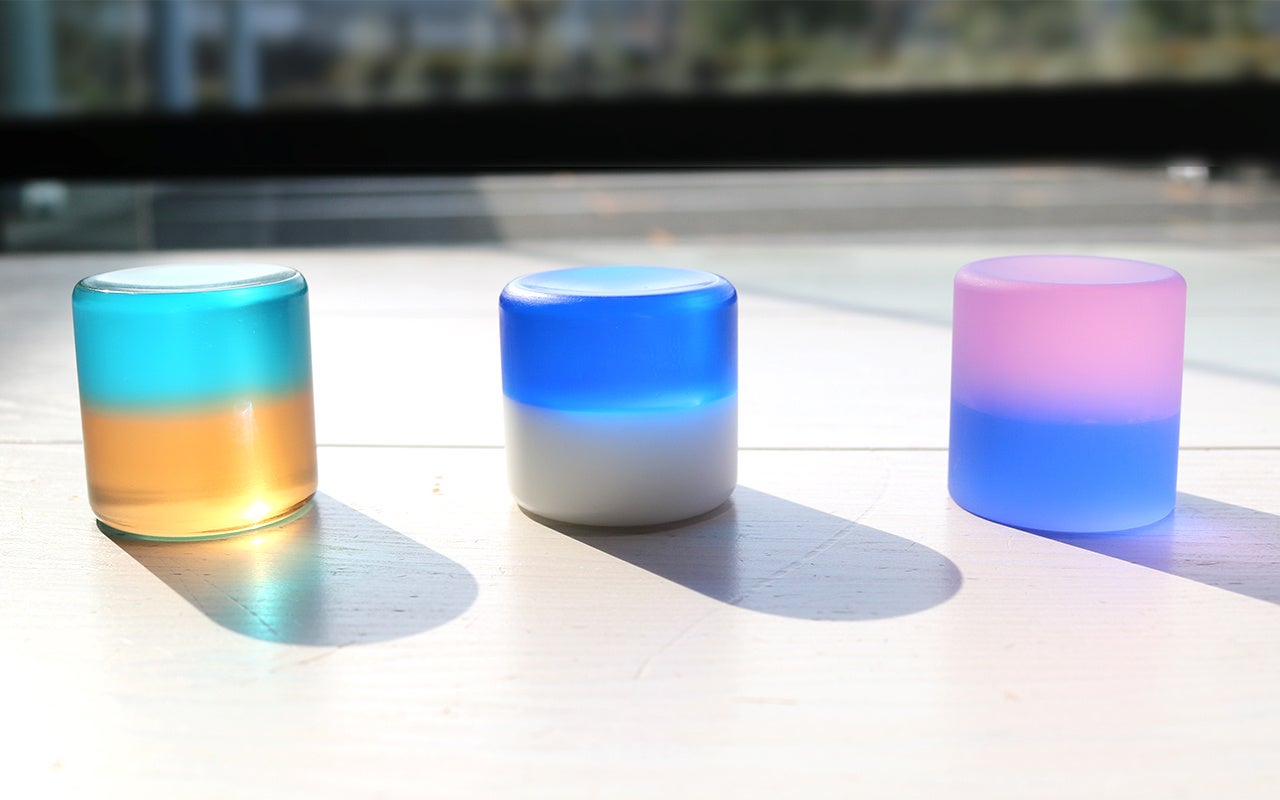 光を通すと表情を変える、美しいグラデーションが魅力のペーパーウェイトです。
