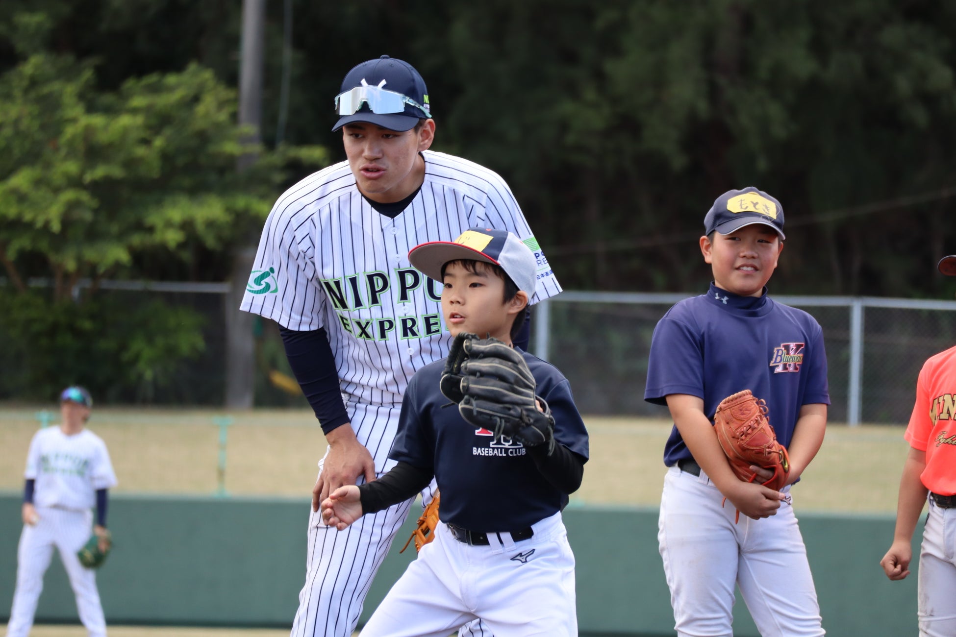「宮古島の子どもたちはとても元気で、活気のある野球教室となりました。同じ沖縄県出身ということもあり、指導に熱が入りました。主にキャッチボール班を担当しましたが、投げる力も強く、ボールへの恐怖心も無く、今後の活躍が楽しみな子どもたちばかりでした。」