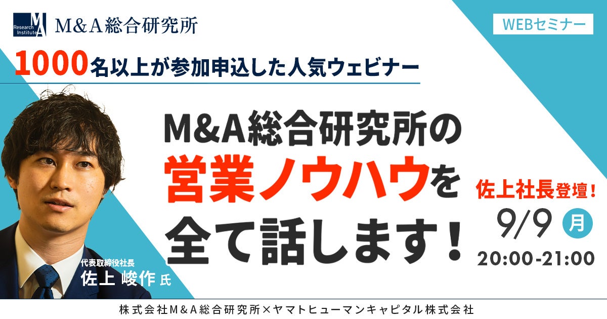 【9/9開催】M&A総合研究所の営業ノウハウを全て話します!