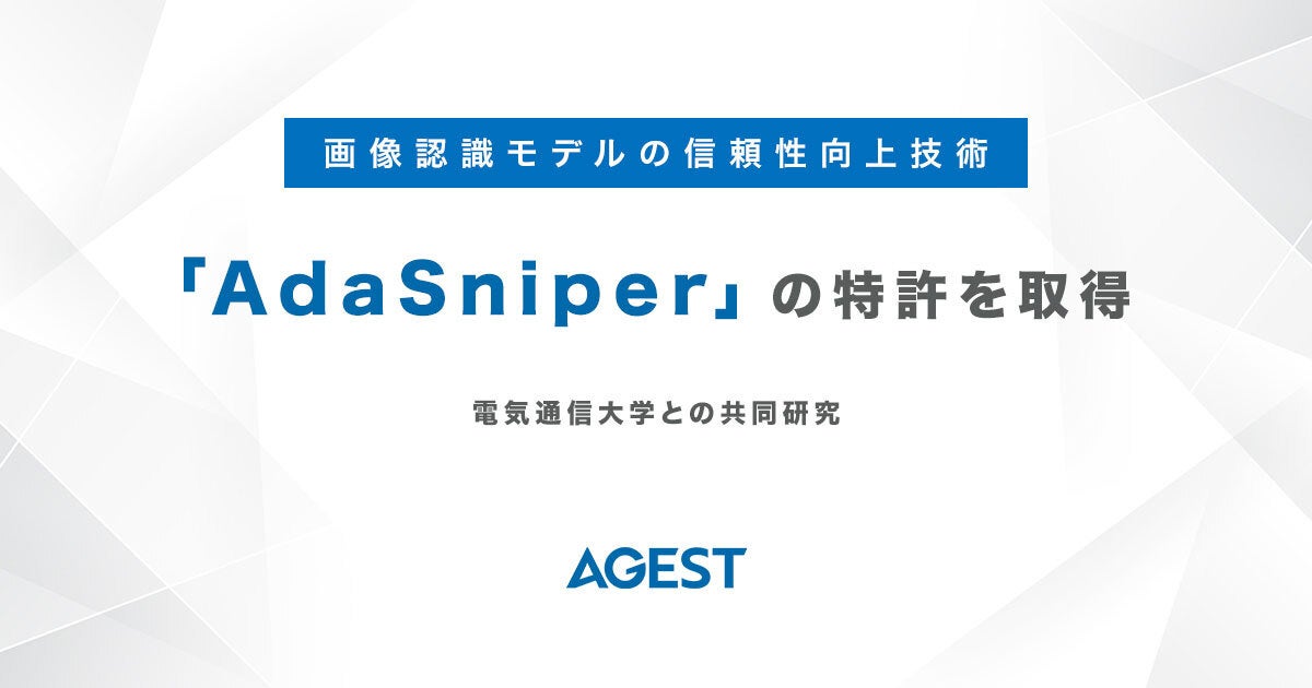 先端品質テクノロジーを活用してソフトウェアの品質・安全性向上を支援する株式会社AGEST(本社: 東京都文京区、代表取締役 社長執行役員 CEO: 二宮 康真、以下、「AGEST」)は、電気通信大学との共同研究により開発した、画像認識モデルの信頼性を高める新技術「AdaSniper」について、この度、特許を取得したことをお知らせいたします。