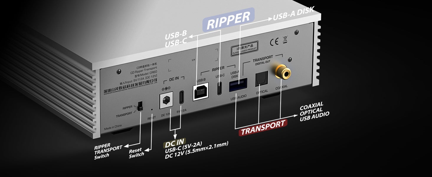 CR60は、CDトランスポーターでありながらCDリッパー( リッピング ) の機能をも、持ち合わせています。