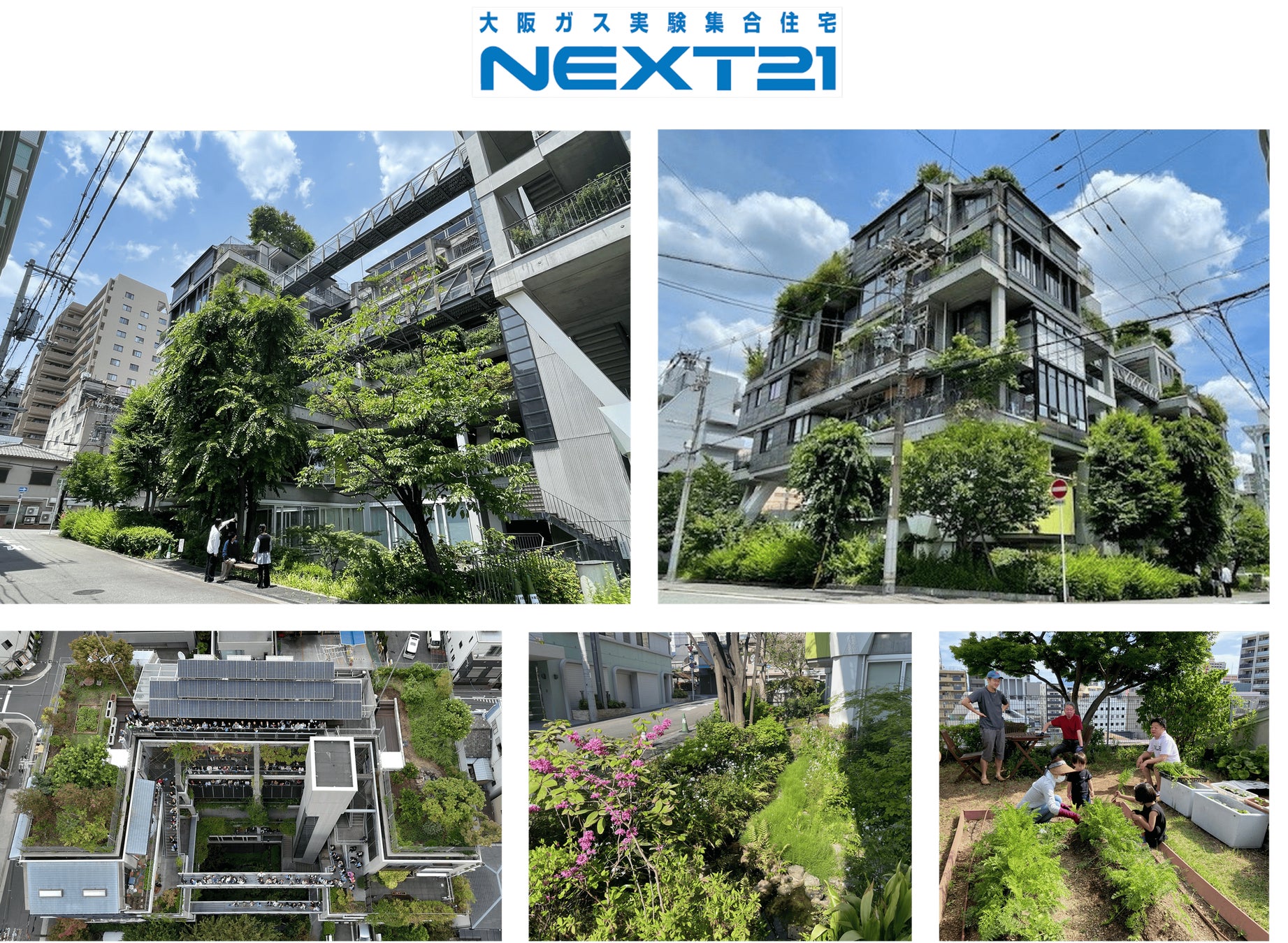 NEXT21は1993年の竣工以来、「環境」「エネルギー」「暮らし」等の課題を解決するために、社員や家族が居住しながら実験を継続している実験集合住宅です。これまでの30年間では自然環境の回復を目指した取組みや緑地管理によるコミュニティ形成など実験的な取組みを行ってきましたが、今後は住棟内にとどまらず、地域を巻き込み、さらなる緑化に関するネットワークの拡大を目指していきます。