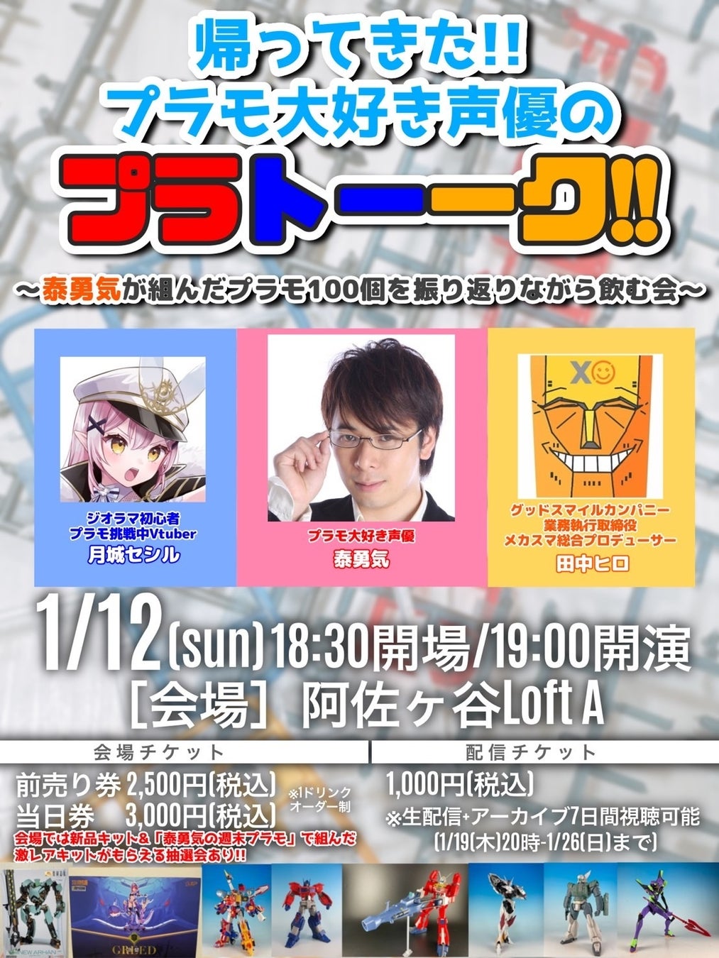 1/12(日)開催!「帰ってきたプラモ大好き声優のプラトーーク!!」チケットペイにて販売中!!