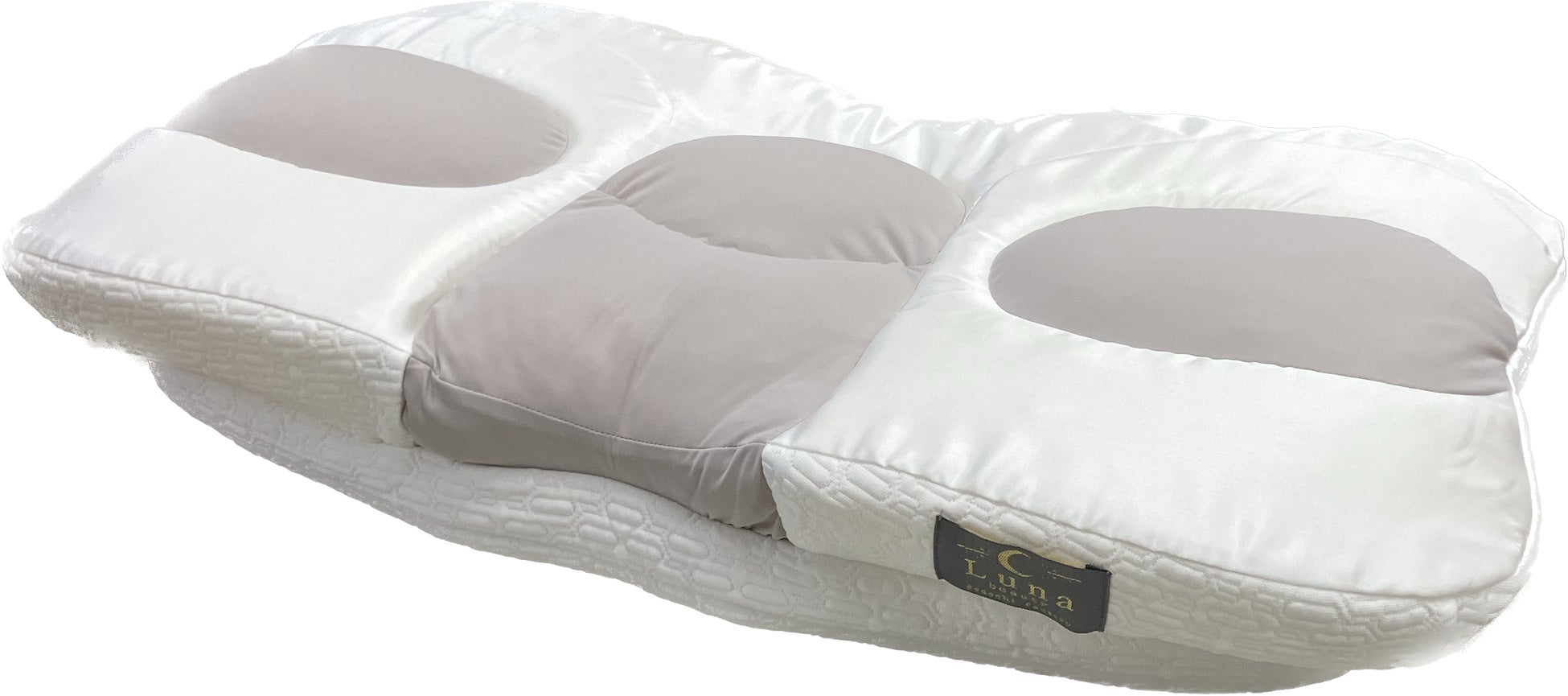 特に横寝時には、独自開発のチークサポート構造が頬への負担を極力軽減するのと同時に、ルナサポートシステムがフェースラインをしっかり支えてくれるため正しい寝姿勢が取り易く、結果的に首のシワ増加抑制も期待できます。