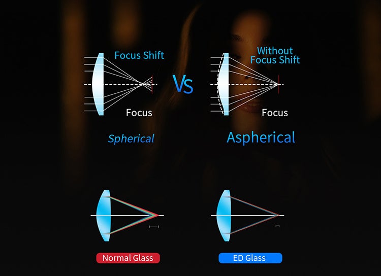 非球面レンズ、ED ガラス、高屈折率ガラスを追加することでレンズサイズを縮小し、同時に完璧なシャープネス、最小限のフォーカスブリージング、厳密に制御された収差を備えた優れた光学性能を提供します。