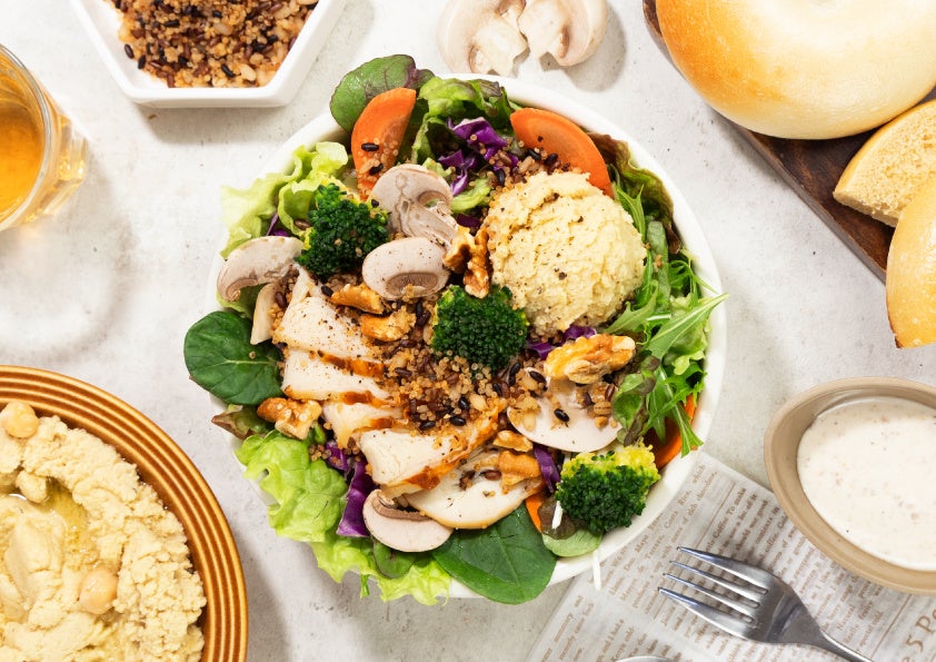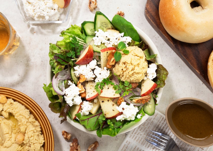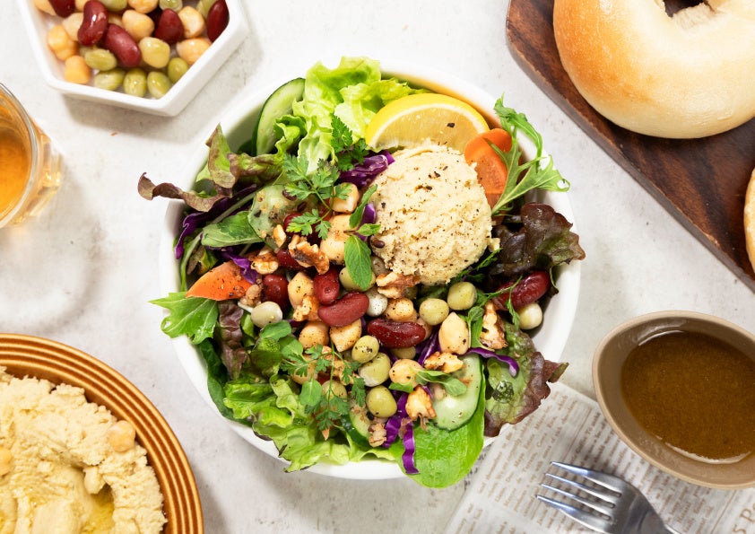 サラダ・フムス・ベーグルがセットになった身体に優しい3種のフムスサラダ。