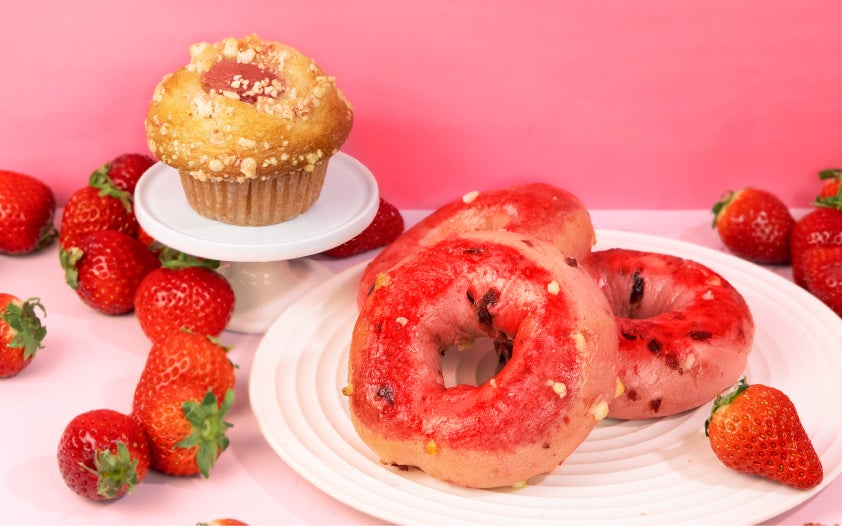 あまおう苺のベーグルやマフィンなど店舗限定商品も販売いたします。