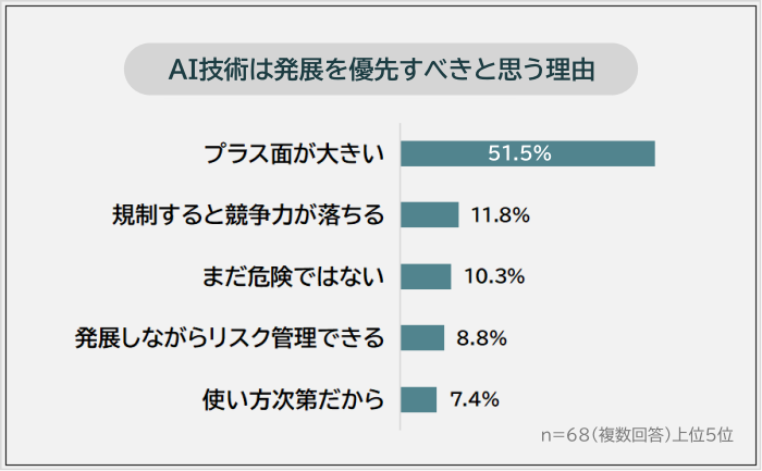 ・AI技術は発展を優先すべきと思う理由は「プラス面が大きい」