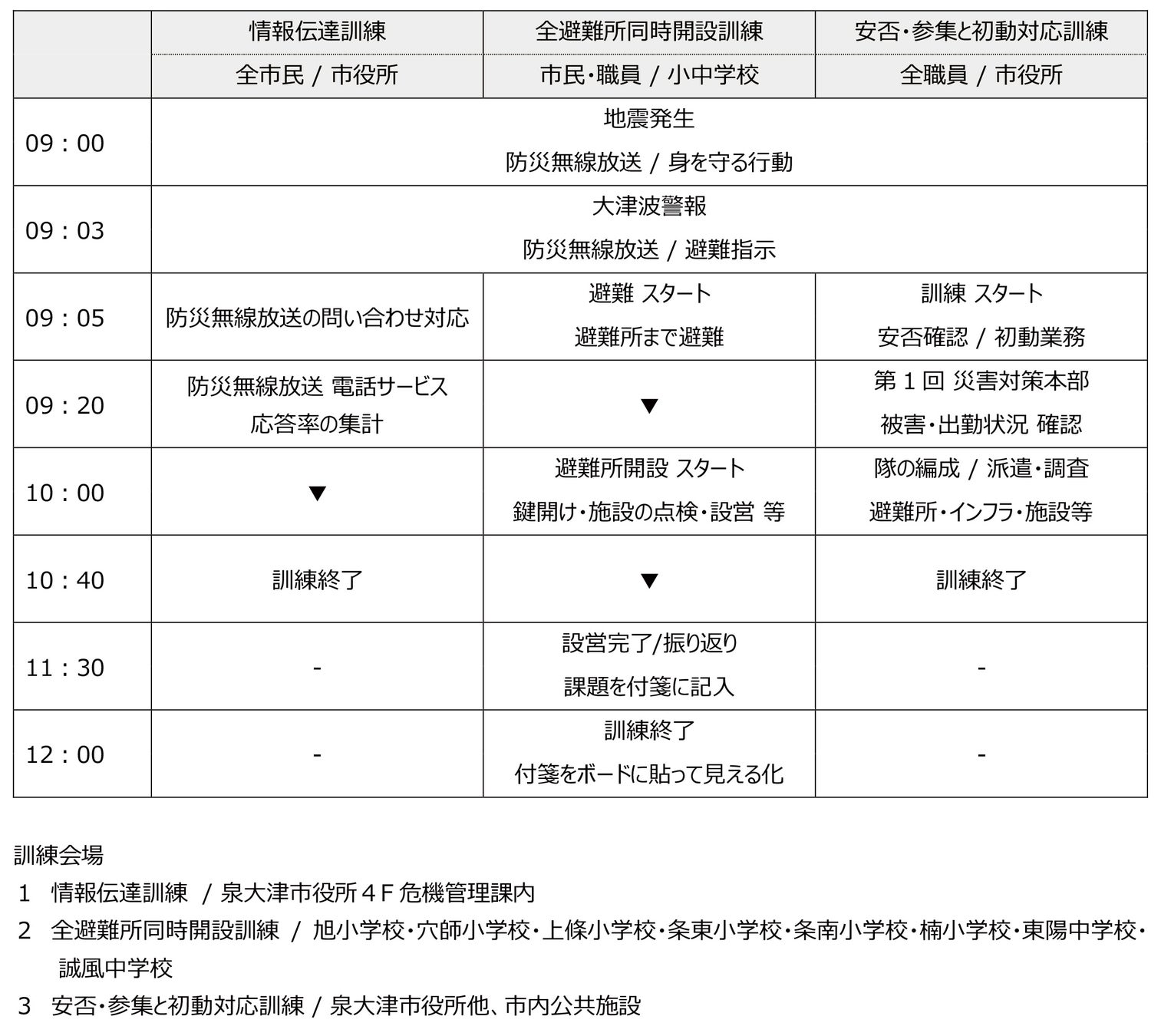 午前の部は、午前9時から正午まで、以下の3つの訓練を同時並行で実施します。