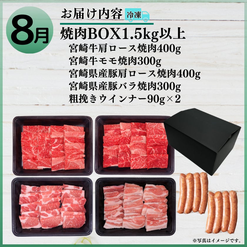 宮崎牛肩ロース焼肉400g、宮崎牛モモ焼肉300g、県産豚肩ロース焼肉400g、県産豚バラ焼肉300g、粗挽きウインナー90g×2