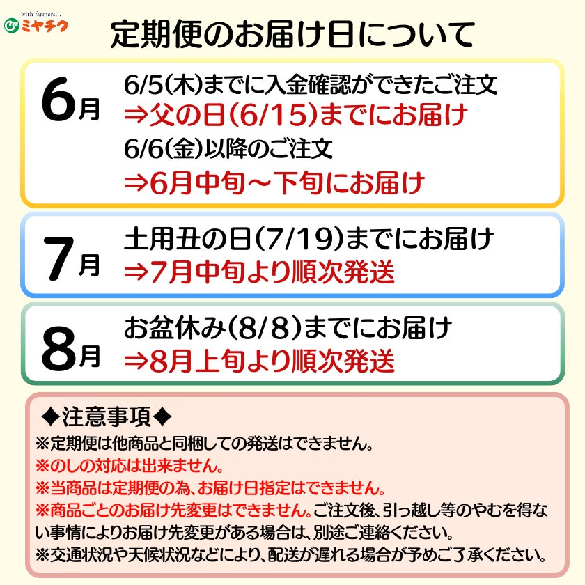 株式会社ミヤチク(本社:宮崎県都城市/代表取締役社長:船ヶ山 祐二)が運営する通販サイト「ミヤチクオンラインショップ」にて、5/14(水)から、6月~8月まで毎月商品をお届けする”みやざき太陽の恵み3ヶ月定期便”の受付を開始しました!