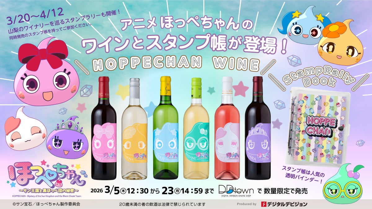 キャラクター雑貨の企画・販売を手がける メモリーテックつくば株式会社 インタラクティブコンテンツ事業部 サン宝石(本社:茨城県筑西市/代表取締役:鈴木伸也)は、山梨県ワイナリーとの取り組みとして、アニメ放送・配信中の人気キャラクター「ほっぺちゃん」と県内ワイナリーが連携した新企画 『ほっぺちゃんワイン&スタンプラリー』 を発表いたします。