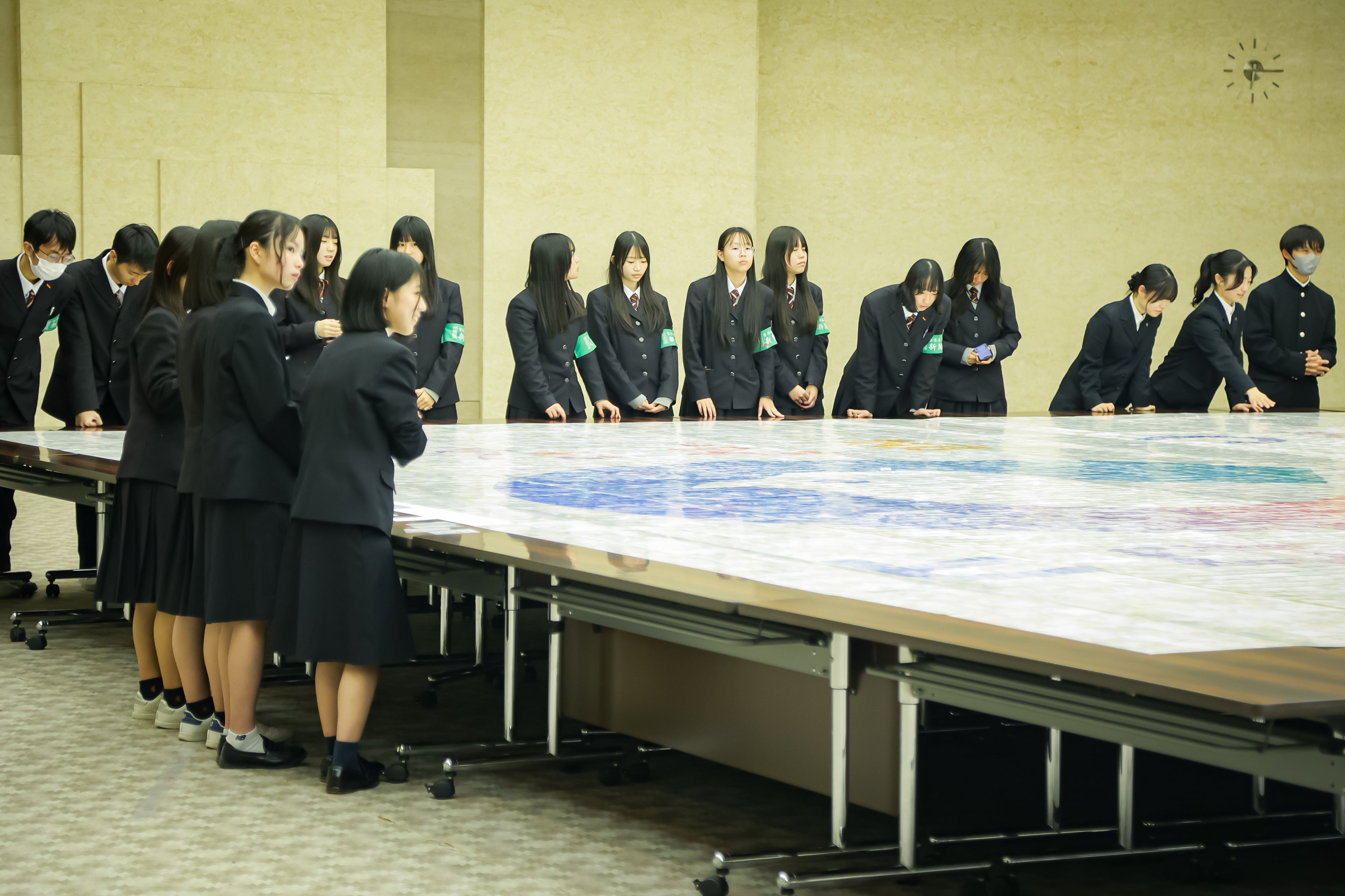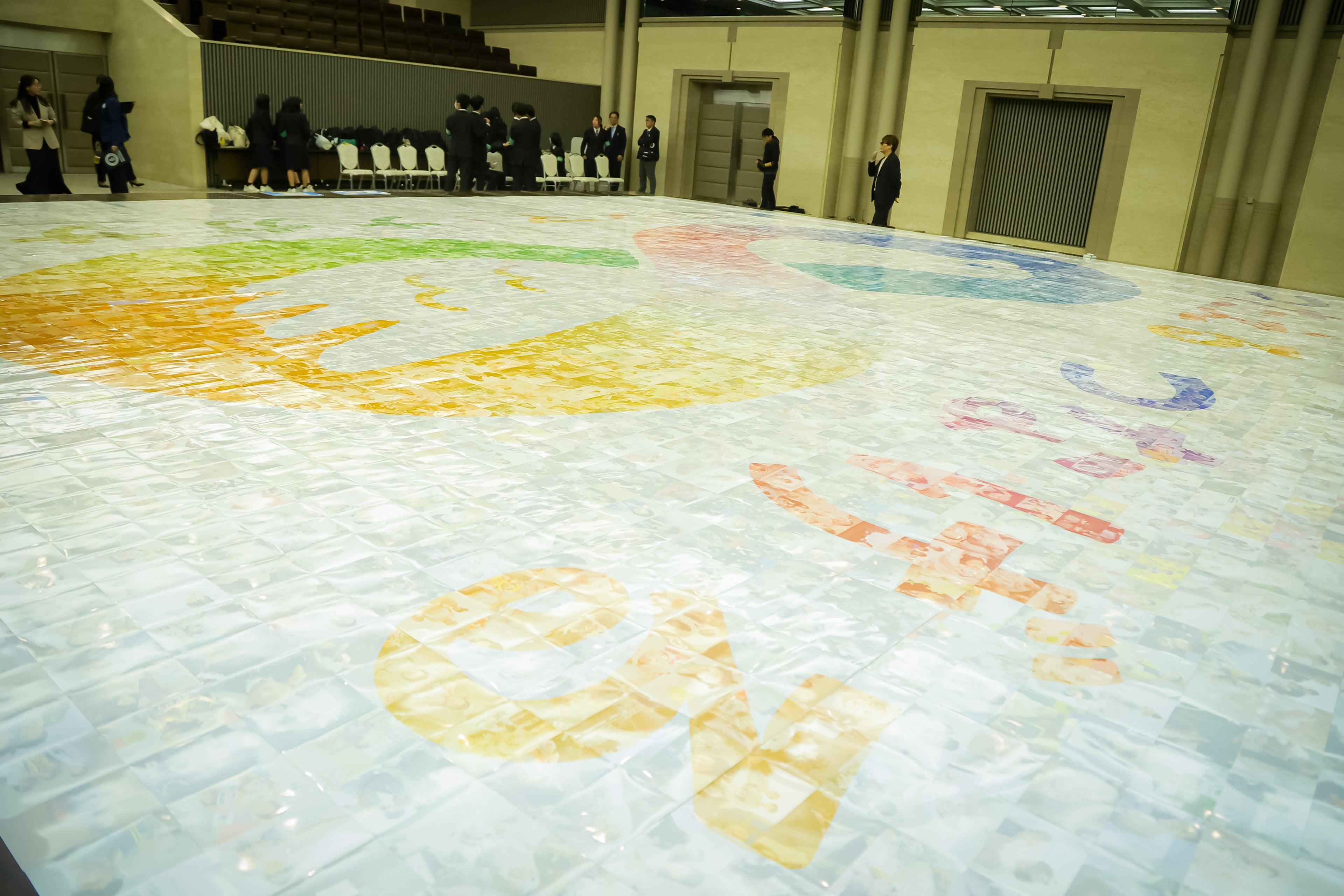 広島国際会議場で披露された縦8m×横8m(総面積63.919㎡)の巨大アートは、若者たちが自ら撮影した写真や公募写真を一枚一枚丁寧に配置し、制作されました。