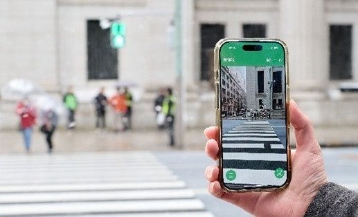 左右の靴に振動デバイスを装着し、スマホと靴の加速度センサーを使い、ユーザーの位置や進行方向を高精度に計測しつつ、スマホのナビ情報を音声や靴に装着した振動で歩行者の歩行を支援・誘導する。2024年10月に一般販売を開始し、日本国内で700台以上を出荷。2026年にはオーストラリア、EU圏を中心に海外展開を準備中。今回は新規取り組みとして、より高精度な位置推定技術を試験するほか、信号機に近づいたことを音声で知らせる機能検証を行う。