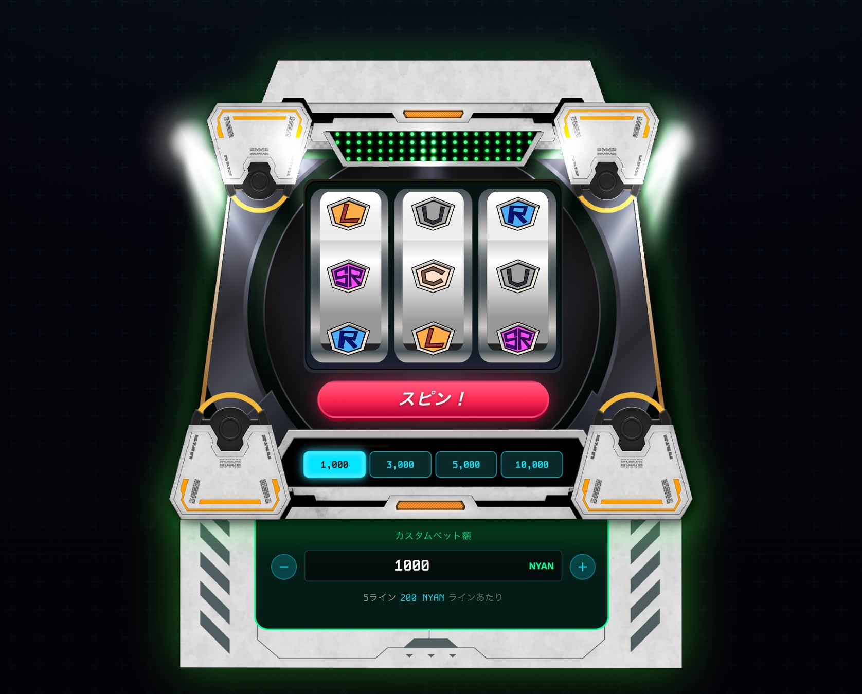 ユーザーは$NYANを用いてスロットゲームをプレイすることが可能です。ジャックポット優勝者には、賞金としてプレイに使用された$NYANの一部が還元される設計となっており、スマートコントラクトによる自動執行により透明性が確保されます。