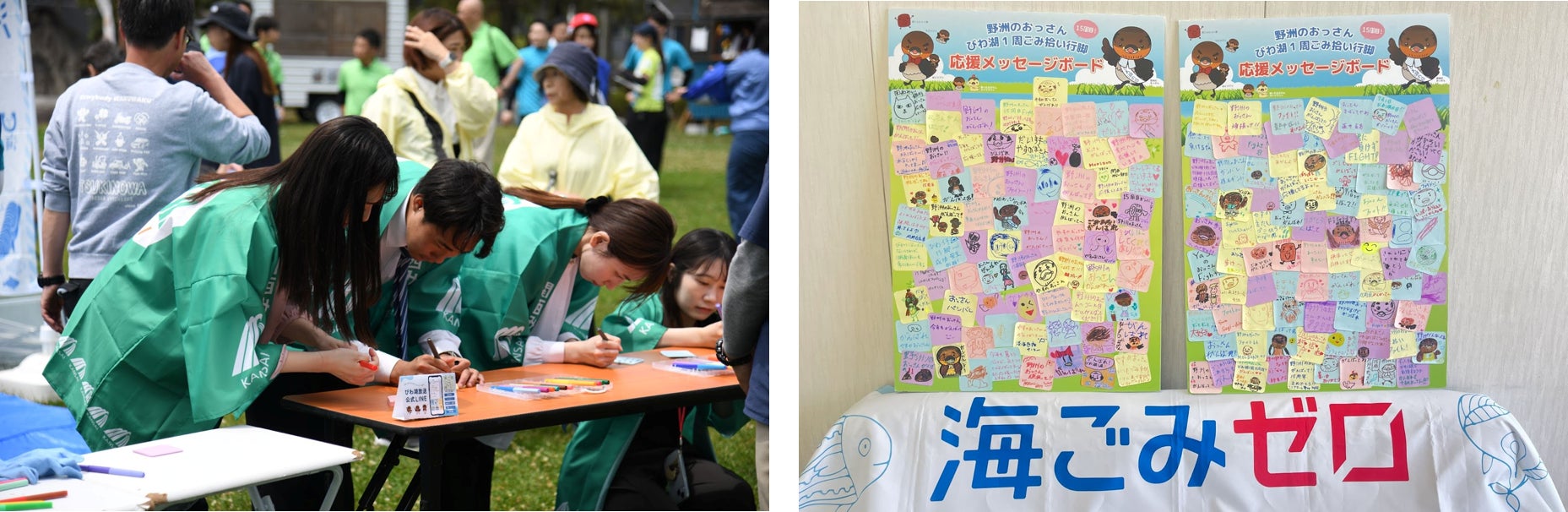 「15周目おめでとう!」といったお祝いのメッセージや「暑さに負けずに頑張って、応援しています」といった応援メッセージ、「琵琶湖を綺麗にしてくれてありがとう」といった感謝のメッセージや似顔絵付きのメッセージなど、心のこもったメッセージをたくさんいただきました。