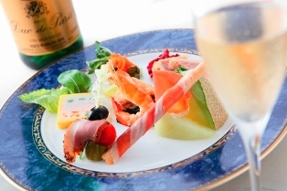日航オリジナルワイン、オードブル、プチデザート
