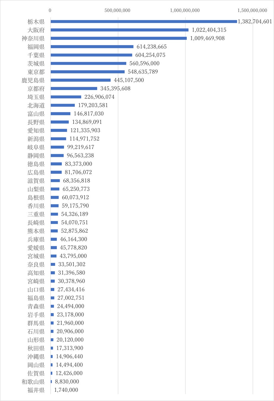図13は2023年の「子育て支援」を含む落札情報の都道府県別落札金額です。