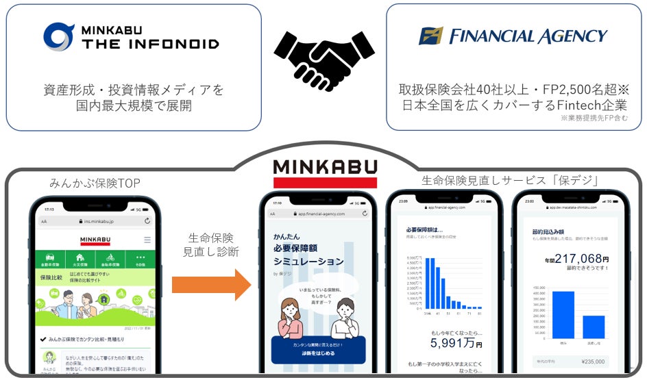 株式会社フィナンシャル・エージェンシー(以下「FA」、本社:東京都渋谷区、代表取締役社長 兼 CEO:齋藤 正秀)は、FAと株式会社ミンカブ・ジ・インフォノイド(以下「ミンカブ」、本社:東京都千代田区、代表取締役社長 兼 CEO/CFO:瓜生 憲)が協業でサービス提供する「みんかぶ保険」において、FAが開発した“必要な保険がすぐわかる”AIシステム「保デジWebアプリケーション」(以下「保デジ」)をWeb上で簡単に利用できる機能を搭載し、新サービスを開始したことをお知らせいたします。