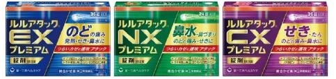 2022年8月には、ルルアタックシリーズからかぜ症状の原因“炎症”を鎮める抗炎症成分を強化*1した「ルルアタックプレミアムシリーズ」を新発売しました。イブプロフェンが早く溶け出す「スピードアタック製法*2」を採用し、各症状のメカニズムに着目した独自処方の総合かぜ薬で、つらい「のどの症状」「鼻の症状」「せきの症状」に合わせて選べる3品目をラインアップしました。