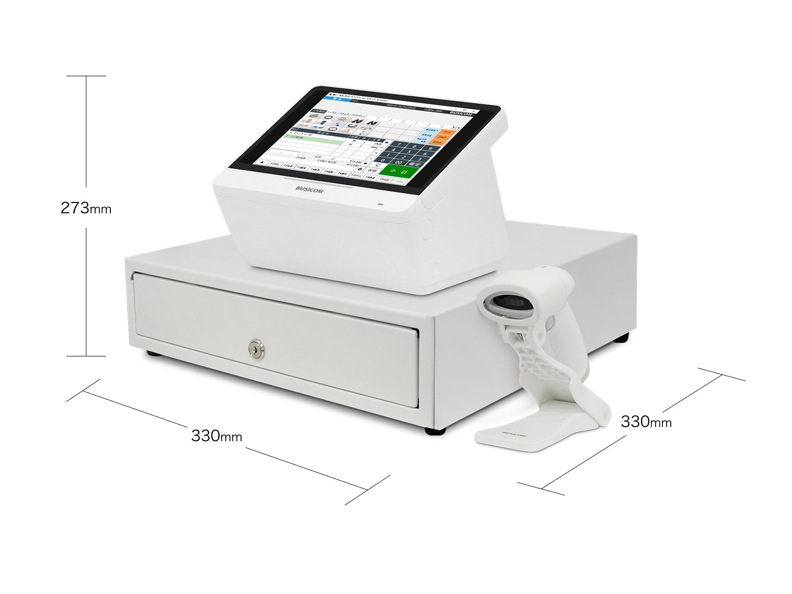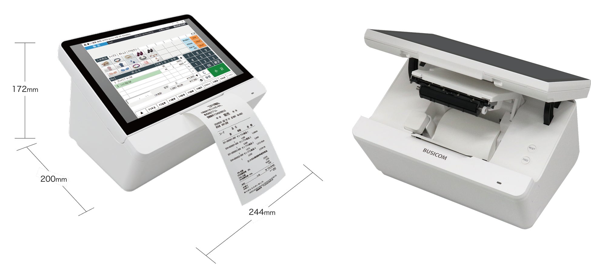 レシートプリンターを内蔵しており、タブレットレジよりコンパクトな設置を実現